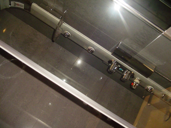 As paredes dos WC's são revestidas em material cerâmico rectificados com algumas partes pintadas.